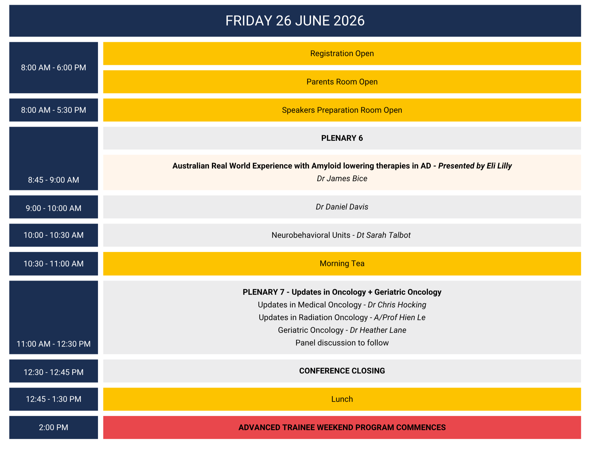 DRAFT Program Download PDF Program Overview Download PDF Program Overview All program times are listed in ACST and are subject to change. CLICK HERE TO VIEW ADVANCED TRAINEE WEEKEND PROGRAM CLICK HERE TO VIEW ADVANCED TRAINEE WEEKEND PROGRAM